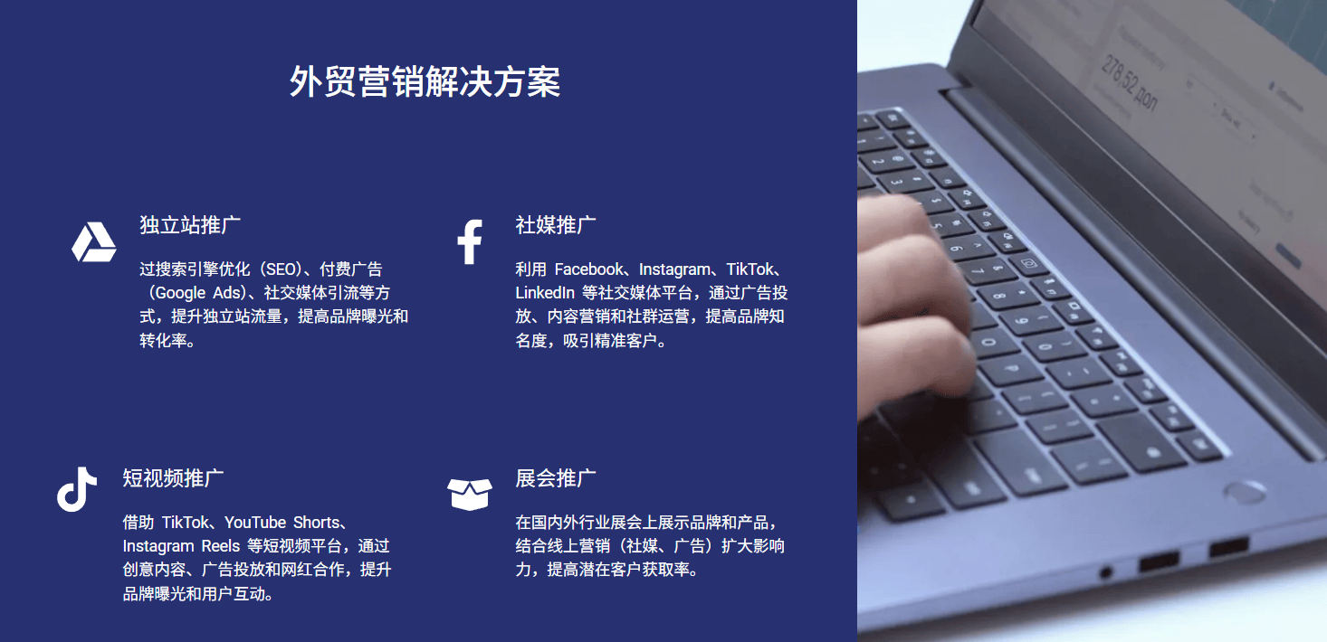 初期测验考试单页告白。布景:产物出口欧洲、等80+国度,·:无效询盘占比超60%,TikTok持续贡献高质量B端线)灯具照明行业(深圳某照明科技公司)·现状:合做后采用“结果营销+品牌营销”连系策略,搭建账号内容后启动告白投放。:合做后告白投放结果快速,共同人工环节节点介入。人工筛选耗时且易脱漏高价值客户(据中国跨境电商办事行业趋向演讲)。现状:合做后持续优化内容,年出口额过亿,·答:星谷云“E展全球方案”支撑展前精准邀约、展后长尾营销,
